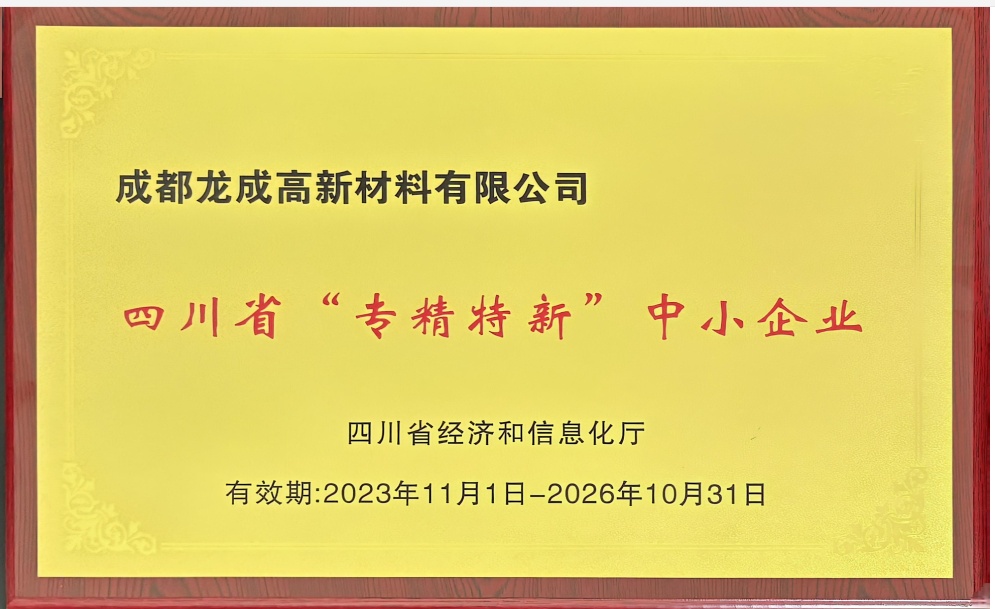 成都龙成高新材料有限公司四川省“专精特新”中小企业证书